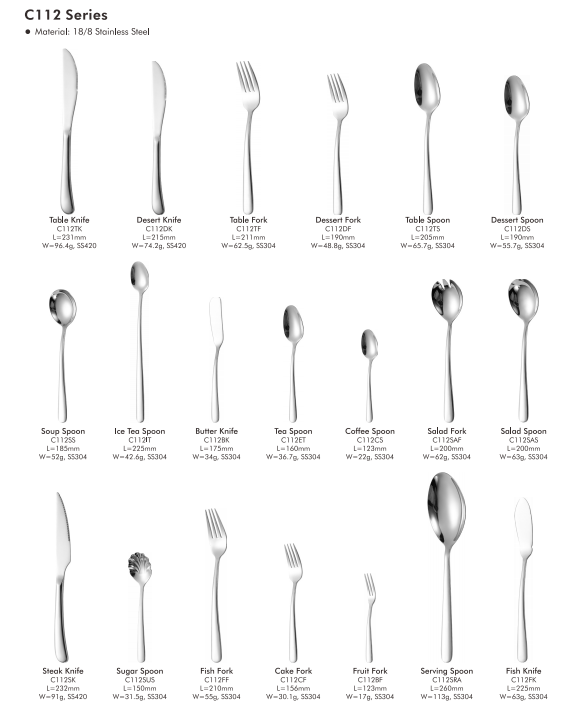C112-serien är sakkunnigt tillverkad av högkvalitativt 18/8 rostfritt stål.